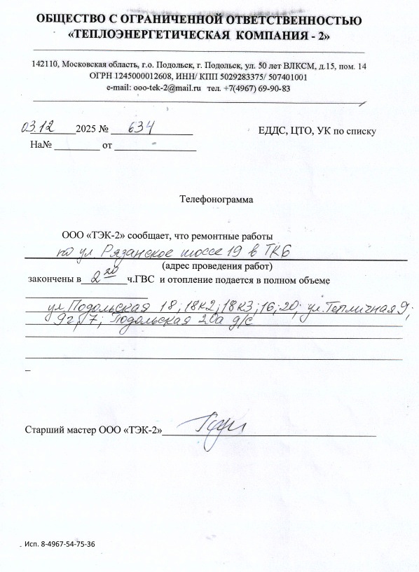 Для жителей МКД по адресу: Г.о. Подольск, г.Подольск, ул. Подольская, д. 16, 18.к1 и 18к.2 - восстановление ГВС и отопления