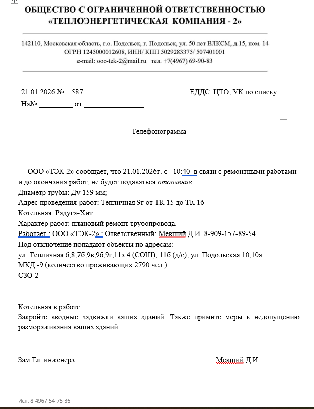 Для жителей МКД по адресу: ул.Быковская д.10 - отопление и ГВС в полном объёме